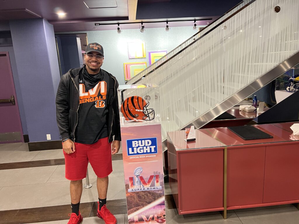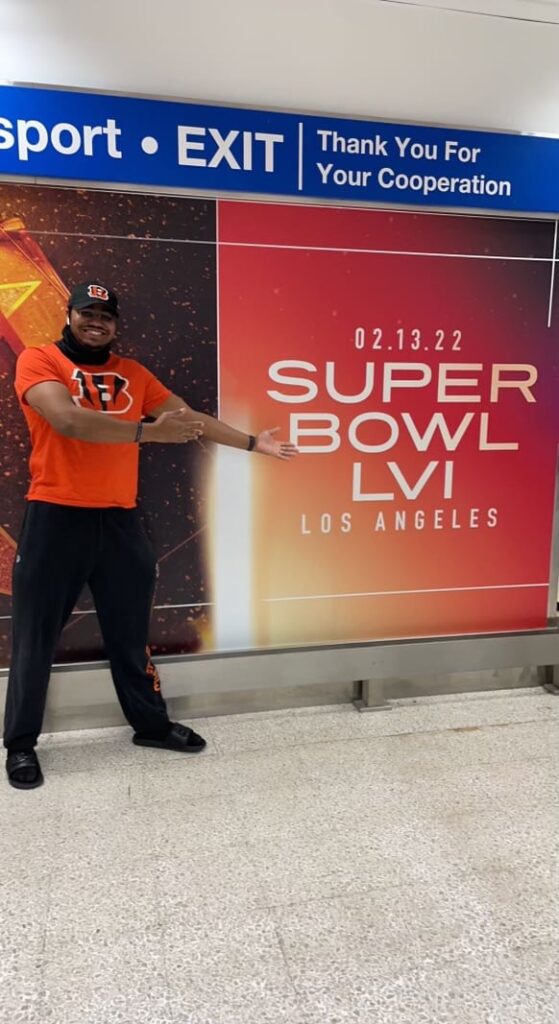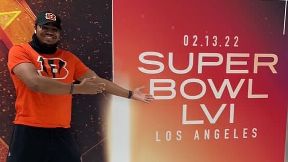 Milwaukee police officer Herbert Davis is cheering on the Cincinnati Bengals at the Super Bowl in Los Angeles!