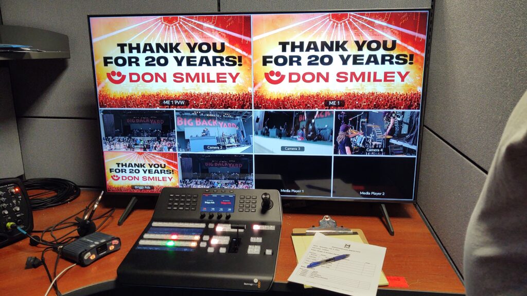 “When ​the ​festival ​grounds ​open, ​we ​go ​live ​and ​you’re ​seeing ​some ​type ​of ​imagery ​on ​the ​screen, ​all ​day,” Adams says. “​When ​the evenings ​come ​is ​when ​we ​really ​put ​the ​camera ​systems ​into ​play. ​So ​in ​the ​afternoon ​we ​start ​shooting ​bands. ​When ​the ​crowds ​start ​getting ​thick ​and ​you ​can’t ​get ​close ​to ​the ​stage, ​that’s ​when ​we ​really ​start ​to ​provide ​an ​opportunity ​for ​people ​to ​get ​that ​kind ​of ​up ​close ​and ​personal ​experience ​with ​the ​band ​in ​an ​artful ​way. ​That’s ​a ​big ​part ​of ​what ​we ​do ​is ​make ​sure ​that ​ ​not ​only ​are ​we providing ​a ​better ​customer ​or ​​attendee ​experience ​with ​the ​live ​video ​feed, ​but ​we ​try ​to ​do ​that ​in ​an ​artful ​way ​to ​create ​a ​