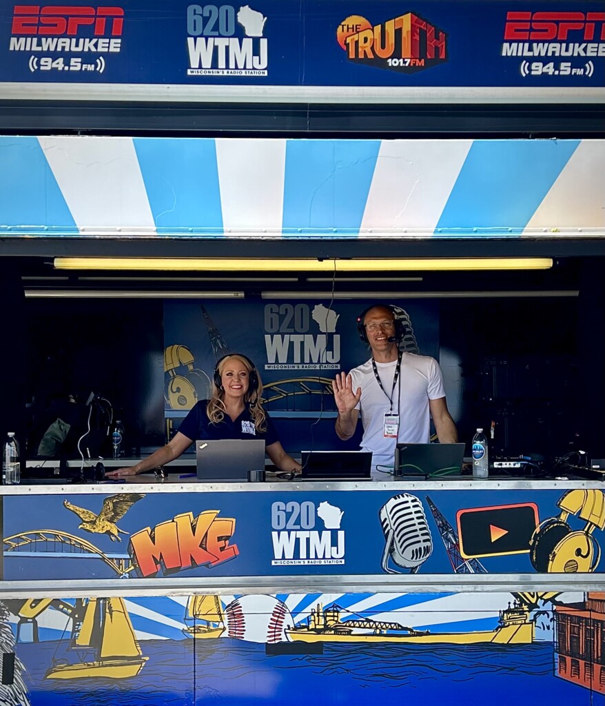 Greg then joined his co-host Jessica Tighe for some fun photos before heading into the Pella Windows and Doors of Wisconsin Mobile Studio for an abbreviated Wisconsin’s Midday News before Brewers baseball.