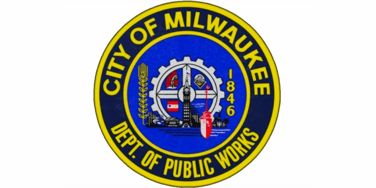 GREENFIELD, Wis. — Part of a Milwaukee public works truck sunk into the pavement at the site of a water main break in Greenfield Thursday afternoon.