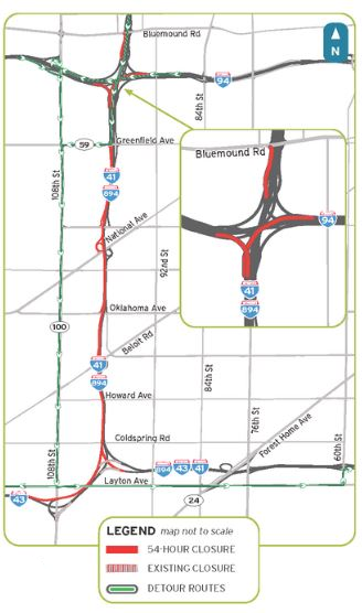 MILWAUKEE — Attention Milwaukee Commuters! Heads-up! The Wisconsin DOT is closing a BIG portion of I-894 for the last of a series of 54 hour closures as part of the ongoing Hale Interchange project.