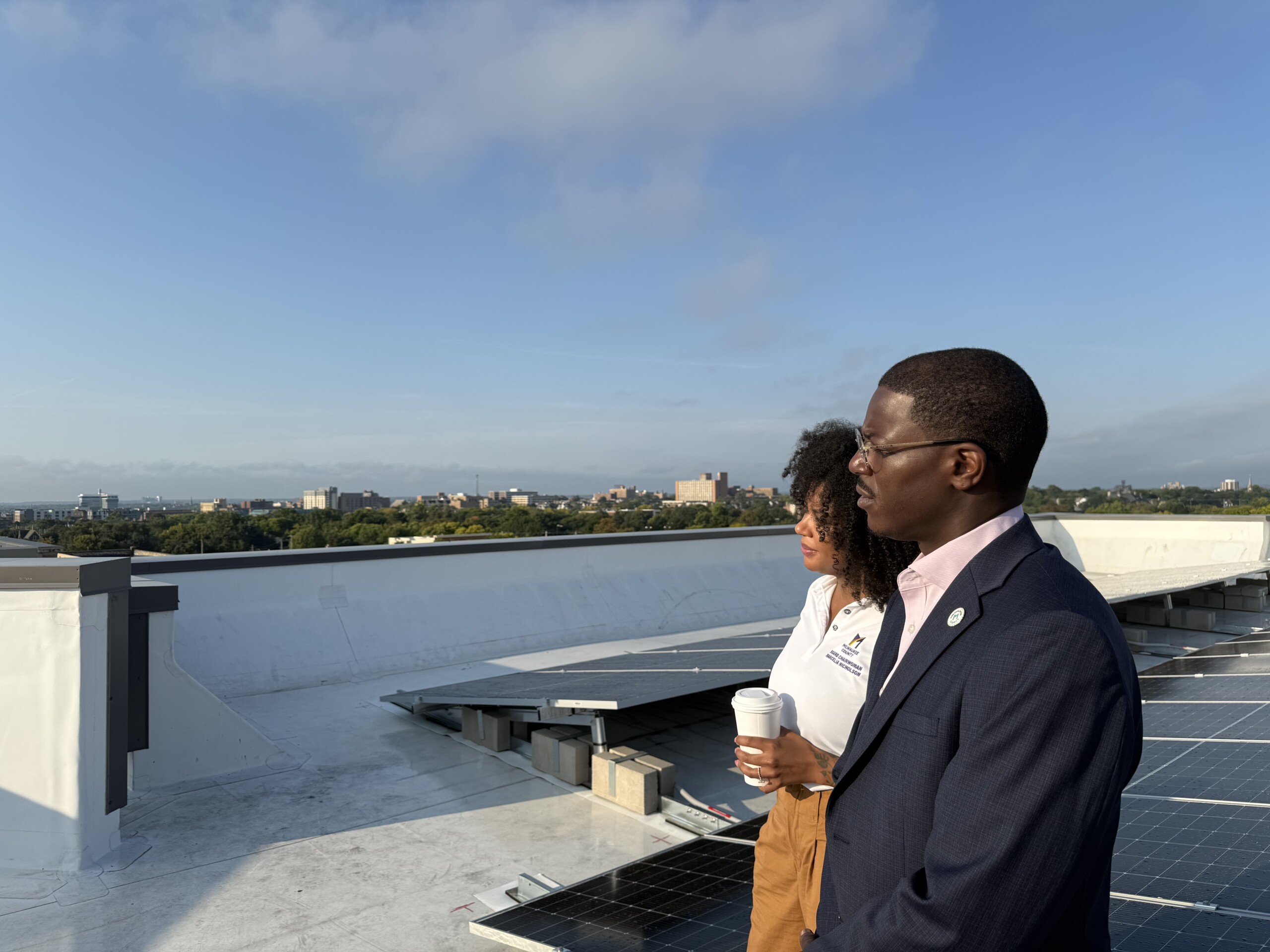 County Executive David Crowley and County Board Chairwoman Marcelia Nicholson toured the 50-kilowatt system, which is expected to supply more than 11.5 percent of the facility’s energy needs. This includes 86 panels on the rooftop. What does that 11.5 percent mean? Well, it’s equivalent to driving about 100,000 miles in a passenger car, five home energy use for the entire year, 41,000 pounds of coal burned, if you have an iPhone, 3.1 million of those charged, and that’s 37.2 metric tons of CO2. The project is designed to reduce utility costs, lower carbon emissions, and save taxpayer dollars.