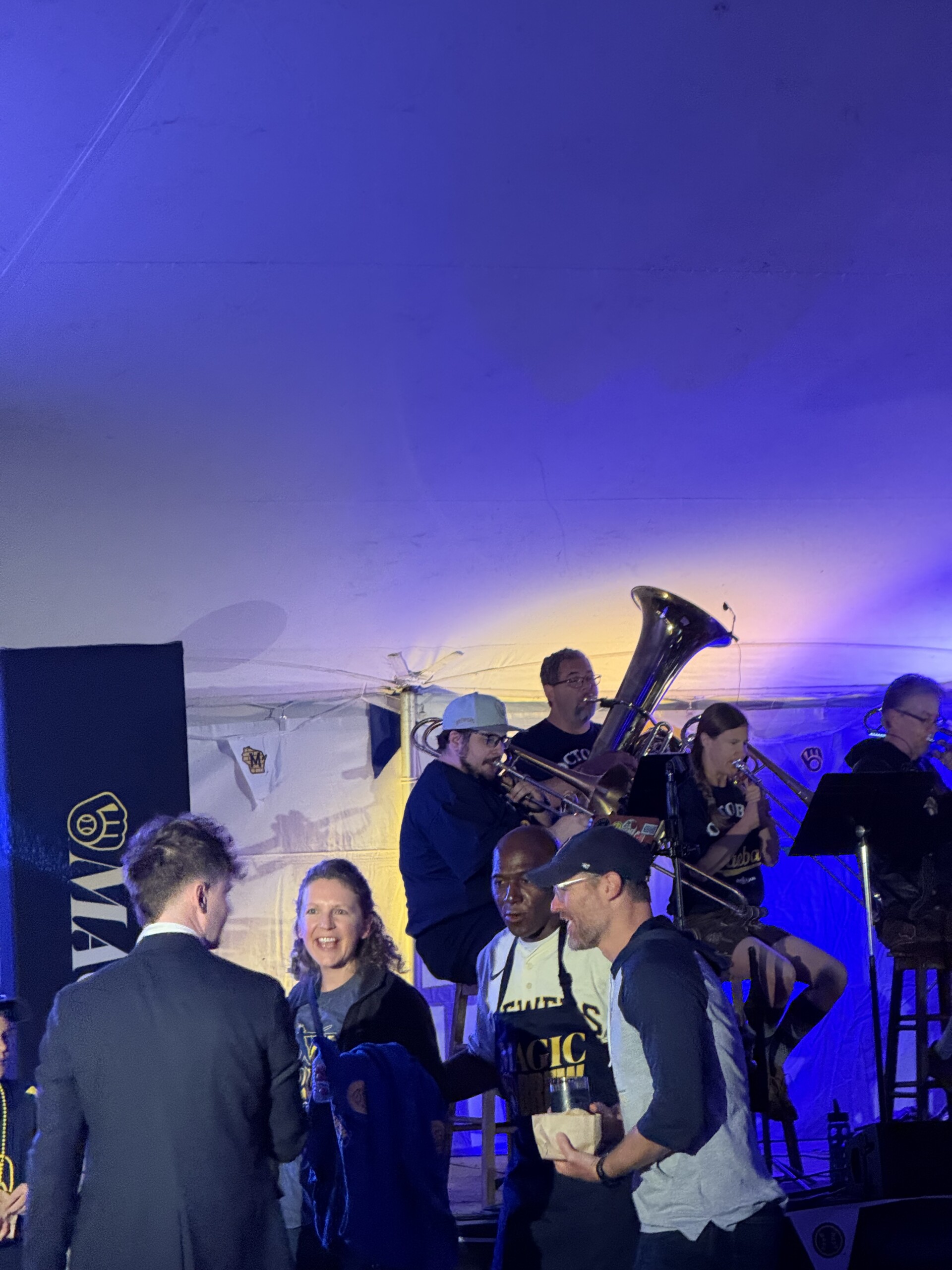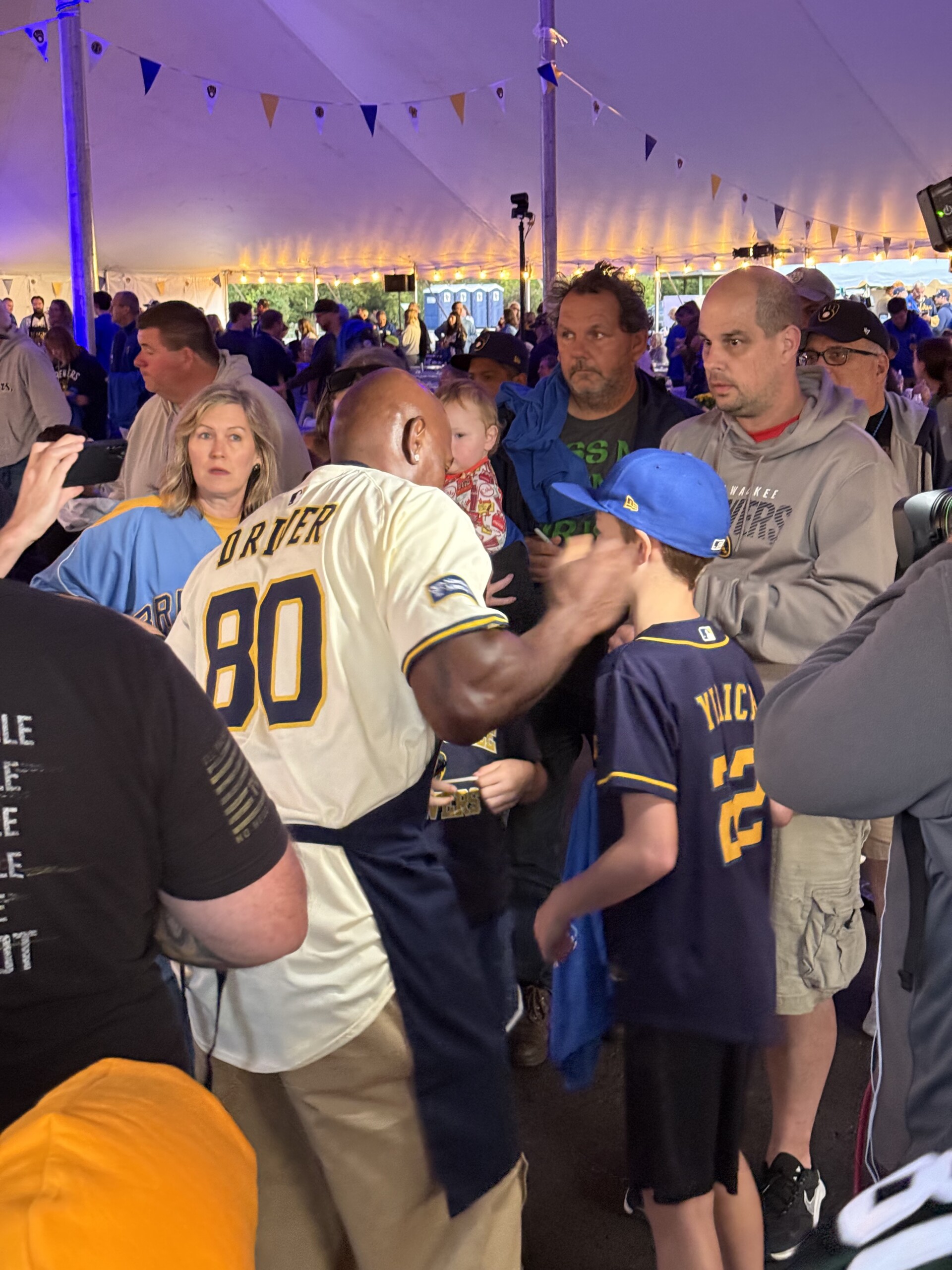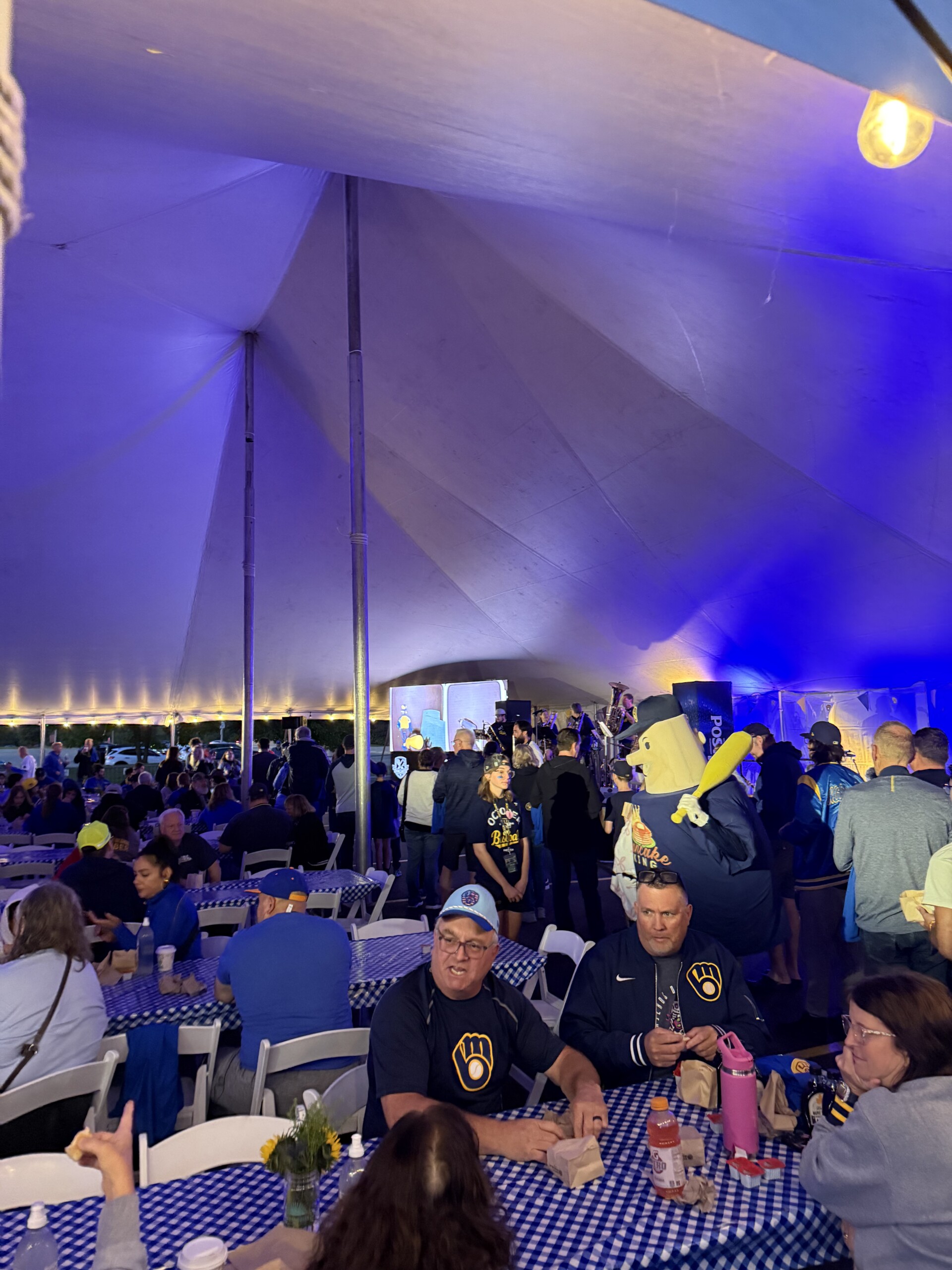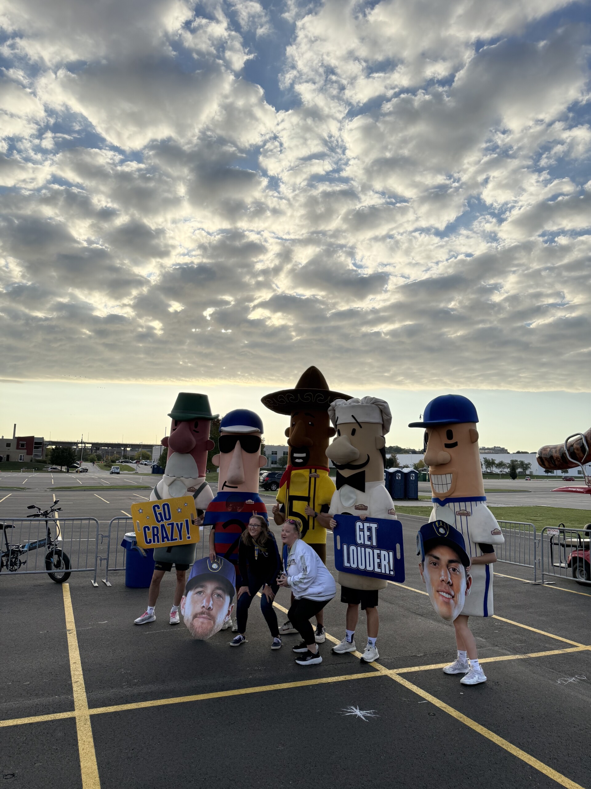 Fans drove from all around the state to come support the Brewers final stretch of home games this weekend, but specifically for the Pocket Pancake celebration as well. Halen Olsen, Lucky Paul, Colson Kleinschmidt and Bob Best are all from Oshkosh area, coming to celebrate the fun event for the Brewers. Other fans are more local, like Emily Anderson and Nic Fugate from Oak Creek.