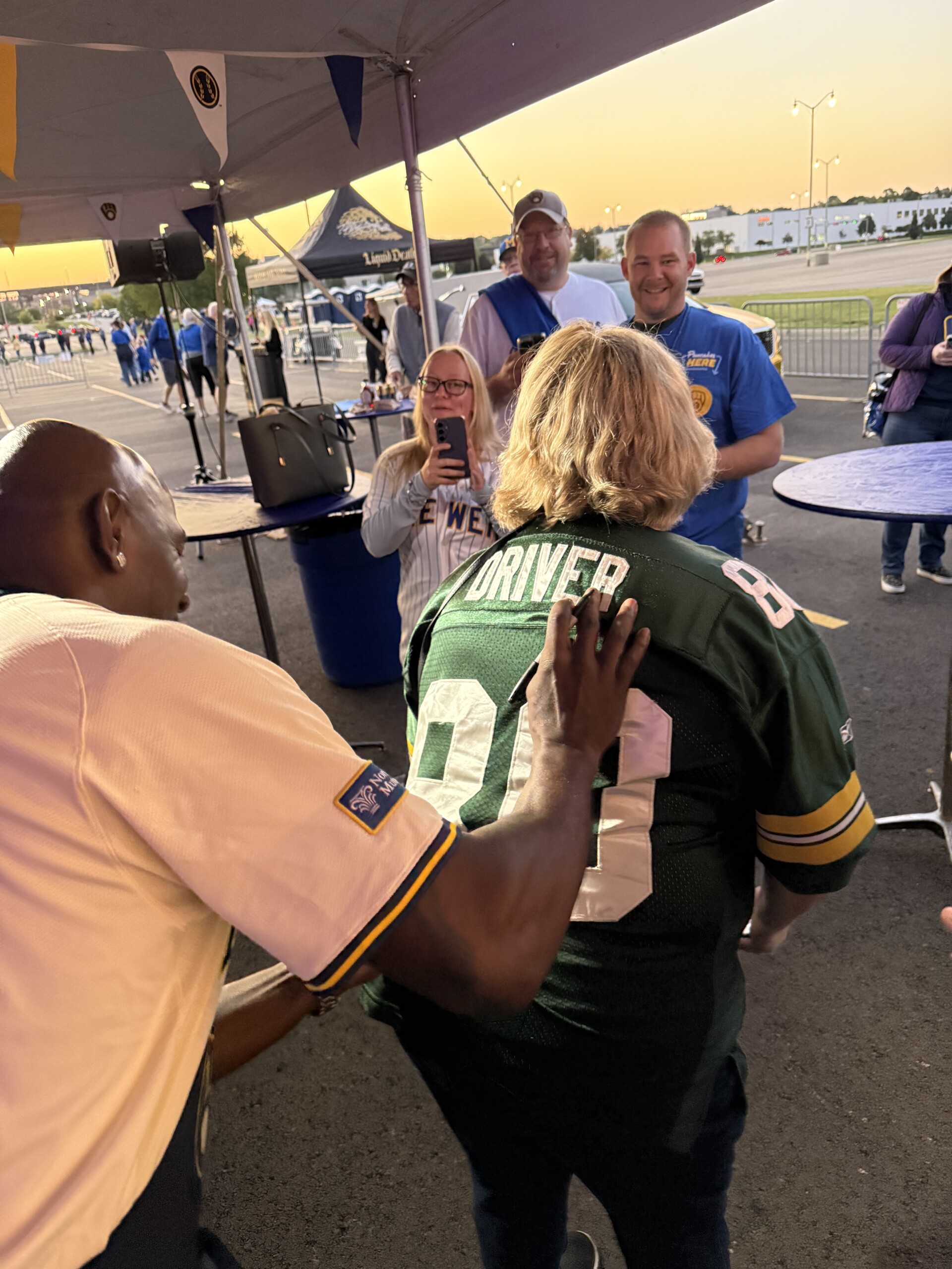 The breakfast wasn’t short on star power. Packers legend Donald Driver, former Badger and NFL fullback, Derek Watt, and Badger Alum and NFL tight end Travis Beckum joined the griddle line, serving up pancakes and syrup while mingling with fans. Donald Driver laughed as he was asked, “Pancakes.. or Waffles”.