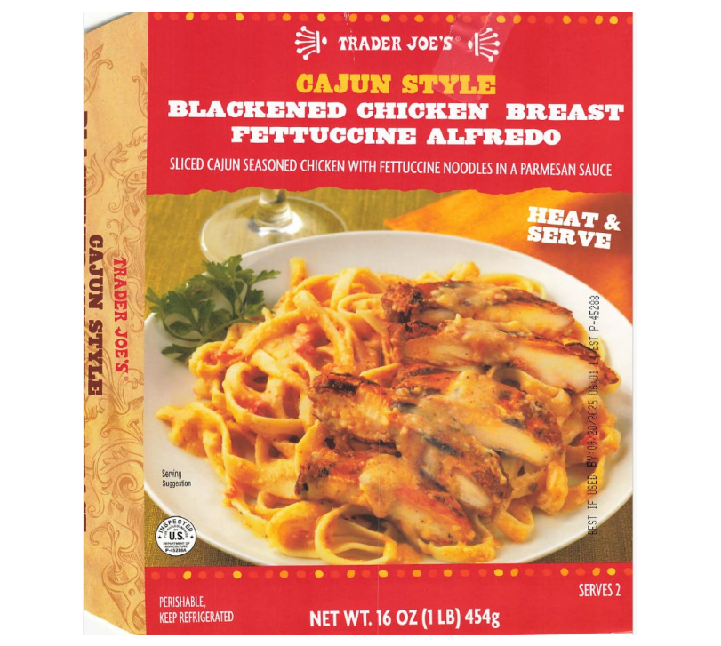 As for items sold at Trader Joes, the USDA is asking for consumers to look out for 16-oz. plastic tray packages labeled āTRADER JOEāS CAJUN STYLE BLACKENED CHICKEN BREAST FETTUCINE ALFREDOā with ābest if used byā dates 9/20/2025, 9/24/2025, or 9/27/2025 printed on the front label of the packaging. The product bears establishment number āP- 45288ā inside the USDA mark of inspection.