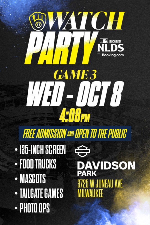 For fans who can’t catch the train, the Brewers will host an outdoor watch party at Davidson Park (3725 W. Juneau Ave.) on the Harley-Davidson campus.
