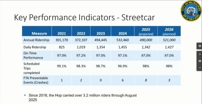In terms of ridership aboard the streetcar, DPW highlighted year-to-year increases through 2024 dating back to the start of the pandemic despite a projected dip in riders for 2025. The Hop reported on its ridership data page that 45,237 people rode the Hop in September of 2025. That equates to an average of 1,508 riders per day and is up about 1,000 riders from the same month in 2024.