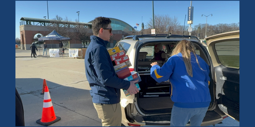 Just outside Helfaer Field, in the shadow of American Family Field, volunteers gathered to help collect drive-up donations from good-hearted Milwaukee folks lined up before 6am.