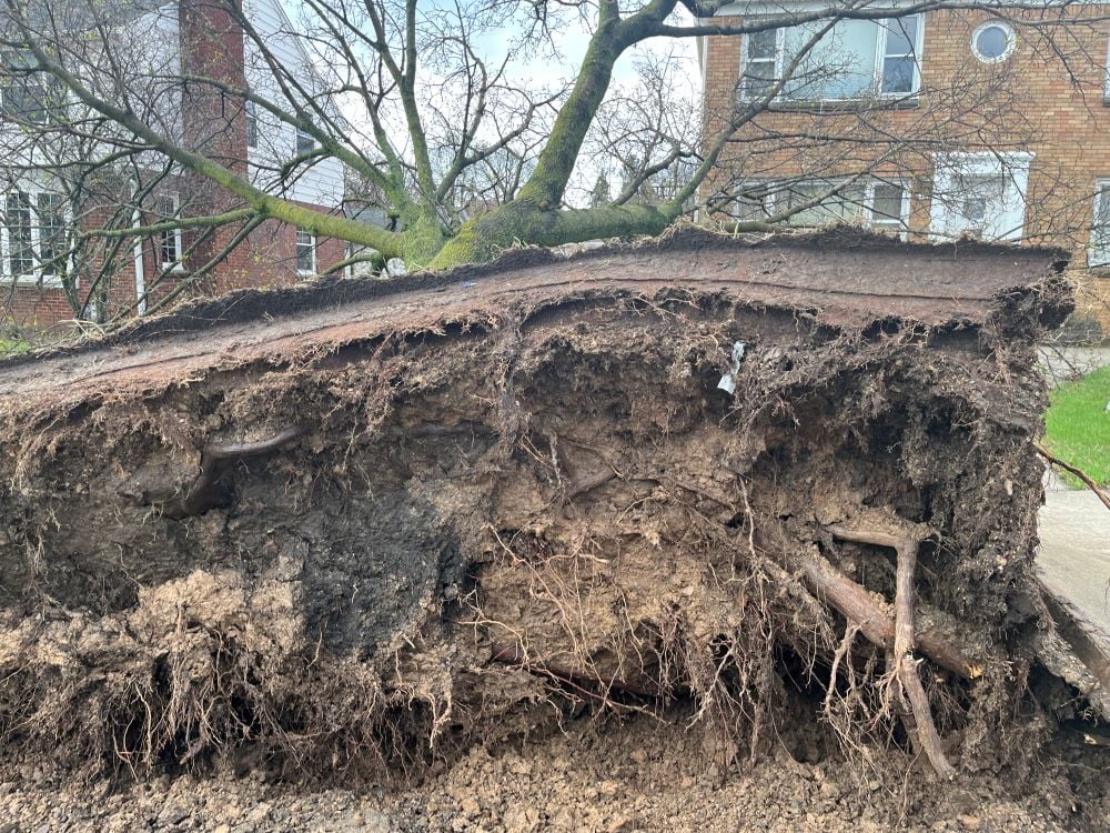 High winds and rotation caused sporadic tree and power line damage Monday night.