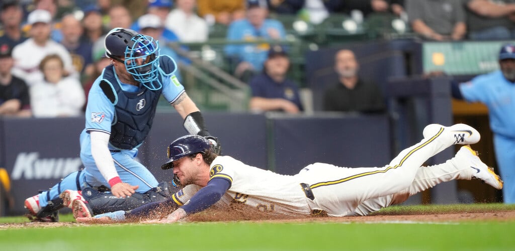 MILWAUKEE (AP) — Garrett Mitchell scored the go-ahead run as the Milwaukee Brewers bunted three straight times in the seventh inning to break a tie and beat the Toronto Blue Jays 2-1 on Thursday afternoon.