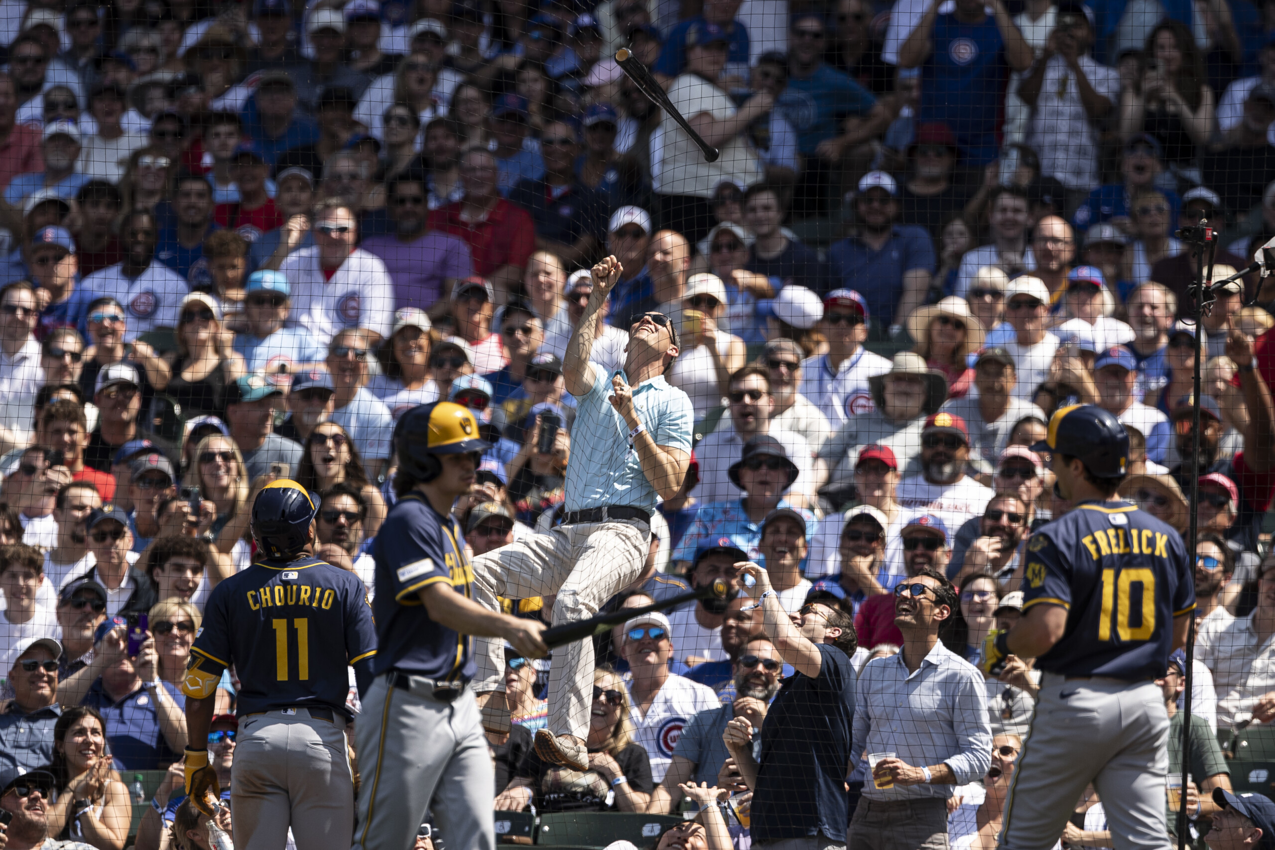 CHICAGO – When Lou Farinella saw Brewers outfielder Sal Frelick’s bat fly into the netting near the visitor’s dugout at Wrigley Field on Thursday, he know he had to try for it.