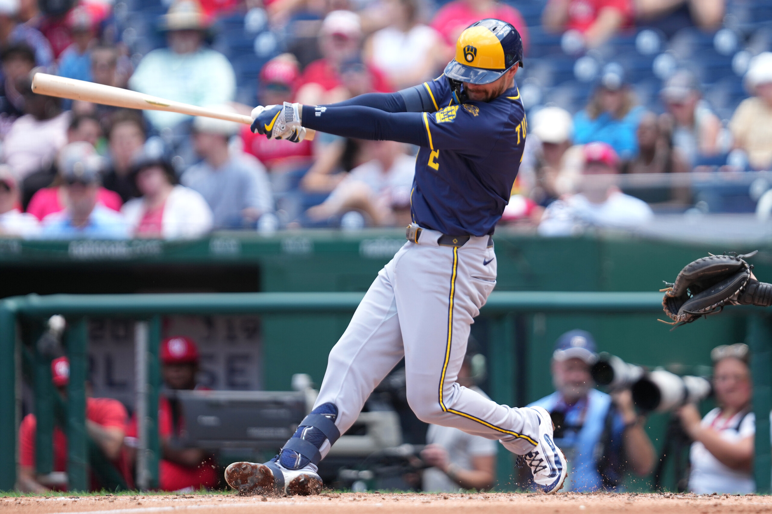 Milwaukee set a club record for a three-game series with 56 hits. The Brewers scored 60 runs in their six wins over the Nationals this season.